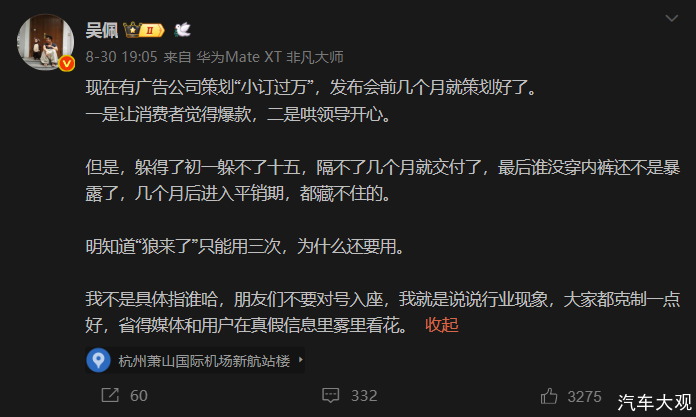 一边是有博主直指汽车行业存在的“小订过万”数据造假现象。他爆料称,有广告公司在新车发布会前几个月就开始策划“小订过万”数据,目的是让消费者觉得是爆款,同时“哄领导开心”。