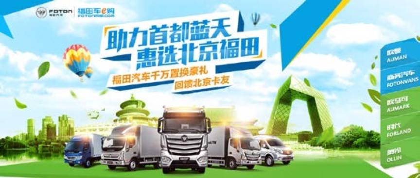 2017年9月20日,北京市政府印发了《北京市促进高排放老旧柴油货运车淘汰方案》,旨在进一步加快北京市高排放老旧柴油货运车淘汰步伐,切实降低机动车污染物排放,持续改善首都空气质量,本次福田汽车与环交所合作推出老旧货车置换一站式服务是积极响应、落实这一政策的具体举措。
