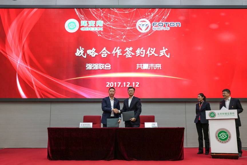 12月12日,福田汽车集团与北京环境交易所战略合作签约仪式在北京举行,福田汽车集团总经理巩月琼与北京环境交易所董事长朱戈代表双方企业签约。此次双方签署战略合作,旨在利用既有资源优势,在旧车淘汰、补贴申领、新车购买、金融贷款等货车置换环节展开一系列的便民举措,加速老旧柴油货运车淘汰速度,为北京蓝天贡献力量。