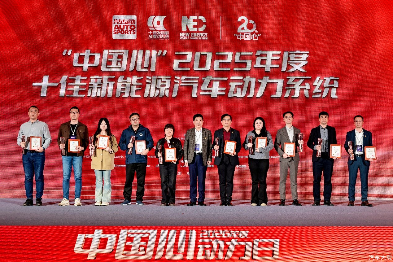 赛力斯动力第五代赛力斯超级增程系统、上汽通用汽车增程式混合驱动系统、比亚迪汽车兆瓦闪充暨3万转电机、ZEEKR 极氪纯电驱动系统、理想汽车自研高压SiC电驱动系统、蔚来900V高性能智能旗舰电驱、上汽奥迪 quattro智能四驱、广汽丰田纯电驱动系统、小鹏汽车XPower动力系统、东风日产纯电驱动系统,进入中国心”2025年度十佳新能源汽车动力系统榜单。