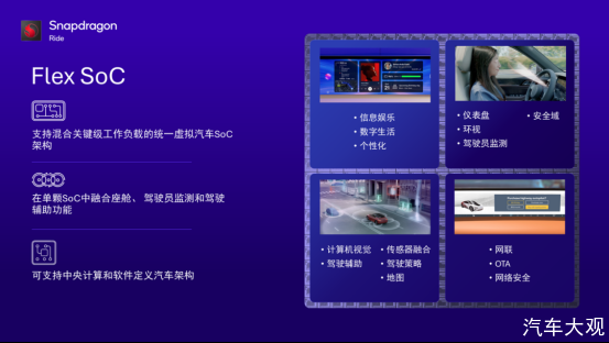 高通当然不是软柿子,但是,座舱王者并不等于智驾王者。过去几年,高通试图凭借其在座舱领域的统治地位,通过Ride Flex平台(如SA8775P)从座舱杀入智驾,但骁龙8775的算力配置仅仅为72 TOPS的智驾算力+30 TOPS的座舱算力,整体偏小,不足以支撑高阶辅助驾驶,自然无法兑现好用的舱驾一体。