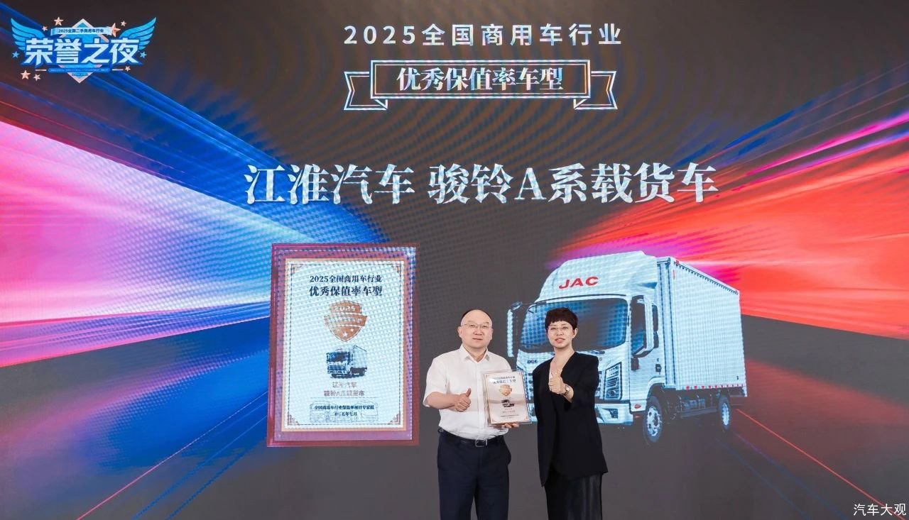 “保值率”不仅是二手车交易时的参考数字,而是综合衡量品牌实力、产品品质、服务保障与市场口碑的试金石。权威奖项是保值率的有力证明,近日骏铃A系载货车成功斩获“2025全国商用车行业优秀保值率车型” 荣誉称号。早在2021年,帅铃全能卡车便以61.8%的保值率拿下此奖项,展现出强大的品牌保值基因。