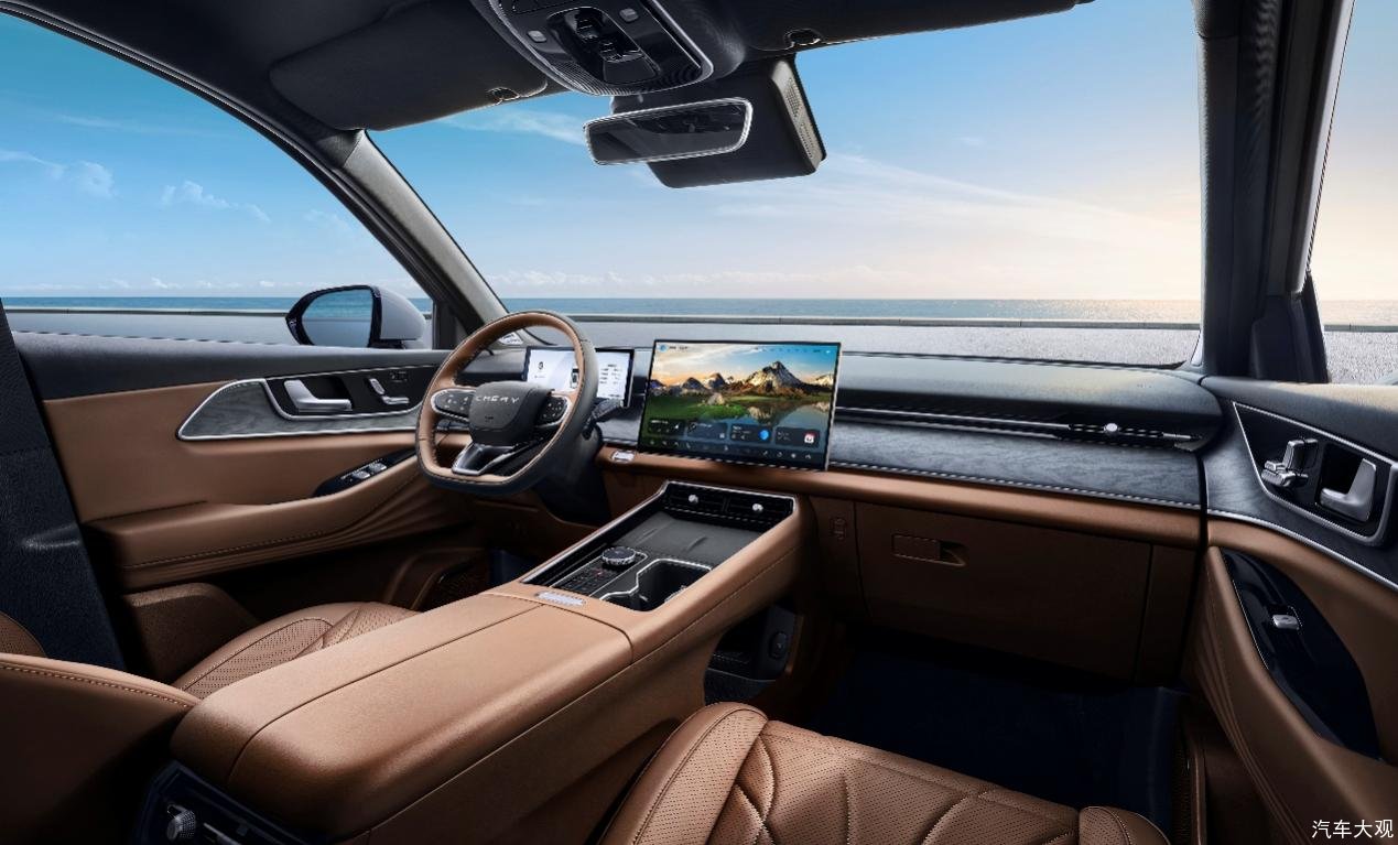 舒适与静谧性层面:同级最优的5+2座魔术空间布局、1930mm同级最宽车身,搭配二排937mm纵向空间,确保每一位乘客都能获得宽敞的乘坐体验;30万豪车级的发动机主动降噪减振技术,实现38dB的怠速NVH(噪音、振动与声振粗糙度)表现,达到“豪车级静谧性”;零重力女王副驾、Spa级按摩主驾、256色光瀑音律氛围灯、50W手机无线快充、AI磁悬浮悬架等配置,从“触觉、听觉、视觉”多维度,将“出行”转化为“品质生活的延伸”。