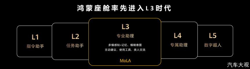 此次大会明确鸿蒙座舱率先进入 L3 专业助理阶段。相较于前两级,L3 阶段具备长期记忆、模糊意图理解等核心能力,可主动提供服务。依托感知力、记忆力等六大类人能力,座舱能记住用户通勤习惯并主动创建场景,还可通过图文视频混合形式解答用车疑问,甚至联动外部工具完成咖啡预订等跨场景任务。