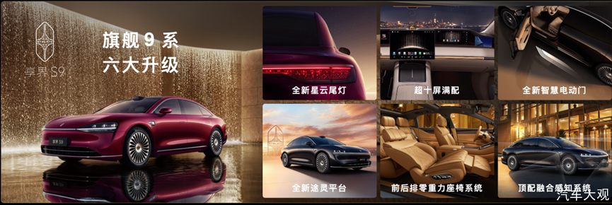 2025年11月20日,在鸿蒙智行 享界S9新品发布会上,旗舰9系享界S9正式上市。作为鸿蒙智行年度压轴新品,新款享界S9全面搭载华为旗舰顶配科技,豪华之上悦启新境。升级搭载全新华为途灵平台、华为乾崑智驾ADS 4、全新智慧电动门、全新星云尾灯、鸿蒙ALPS健康座舱、后排零重力座椅、华为百万像素智慧投影大灯、华为悦彰音响卓越系列等,以越境的豪华、智慧、性能、安全体验,全面满足用户商务社交、家庭出行、城市休闲等场景,实现更瞩目、更从容、更悦享的出行体验,引领豪华轿车价值跃迁。