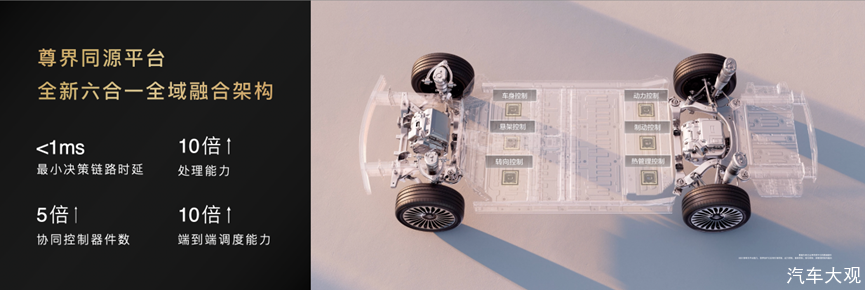 以智能驾驭性能,新款享界S9升级全新一代华为途灵平台,让豪华更从容。新车采用前独立双叉臂,后五连杆悬架设计,标配5档可调的智能空气悬架,全新连续可变阻尼减振器,操控与舒适兼得,机械质感媲美百万豪车;升级尊界同源的全新六合一全域融合架构,决策时间更短,调度能力更强,搭配华为乾崑智驾ADS 4、时空智能悬架网络、HUAWEI XMOTION Control智能车身协同控制及HUAWEI DATS动态自适应扭矩控制等多项技术的协同配合,如同赋予了新款享界S9底盘“明亮的眼睛”、“聪明的大脑”以及“强壮敏捷的四肢”。在出行中,车辆提前路况预瞄,路况空间模型分辨率提升100倍 ,并通过高效智能思考,精细化协同控制,紧急避障精准操控、颠簸路、坑洼路游刃有余。在中汽中心麋鹿测试中,更是取得了84.1km/h 的优势成绩,为用户带来颠覆性的操控性能。