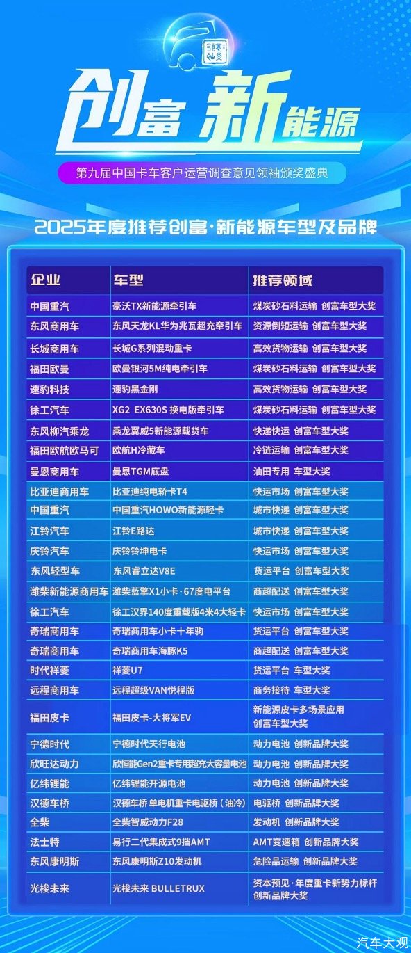 盛会落幕,初心不改。第九届“意见领袖”颁奖盛典以新能源为锚点,以创富为目标,不仅勾勒出当下卡车行业的创新图谱,更凝聚起产业转型的强劲合力。展望未来,《卡车之友网》将继续以这一平台为核心载体,深化行业的交流与合作,推动各方在绿色发展、技术创新赛道上持续深耕,为千万从业者铺就更为广阔的创富之路。