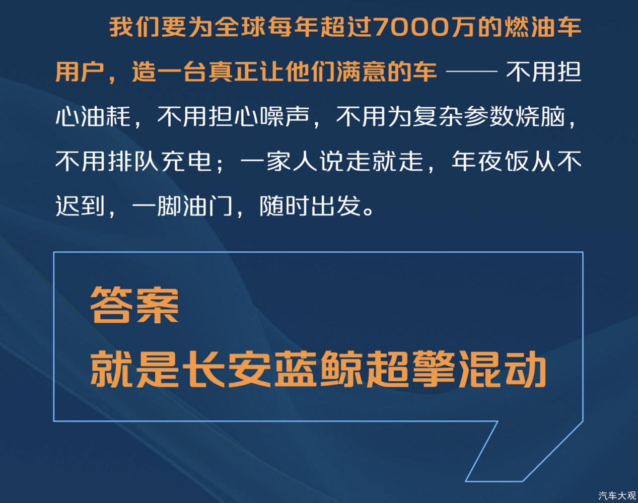 中国新能源汽车实现了弯道超车,全世界都看见了中国车,但全球每年仍有超过7000万用户选择燃油车。究其原因,是因为他们既需要燃油车的安心与便利,又渴望低油耗、好体验、还智能。这些需求迟迟未被满足。