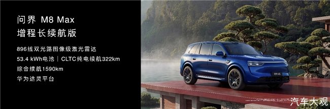 华为途灵平台方面,问界M8底盘通过硬件与软件双重优化,整车抑制晃动能力与侧向支撑性能分别提升25%与31%,使操控更灵活,乘坐更舒适,让每一次家庭出行都舒心又从容。此外,在智能交互方面,百万像素智慧投影大灯新增松鼠松果灯语,为每一次出行增添专属仪式感。新车新增升级Max增程长续航版,配备896线双光路图像级激光雷达,搭载53.4kWh电池,CLTC纯电续航322km,综合续航达1590km。