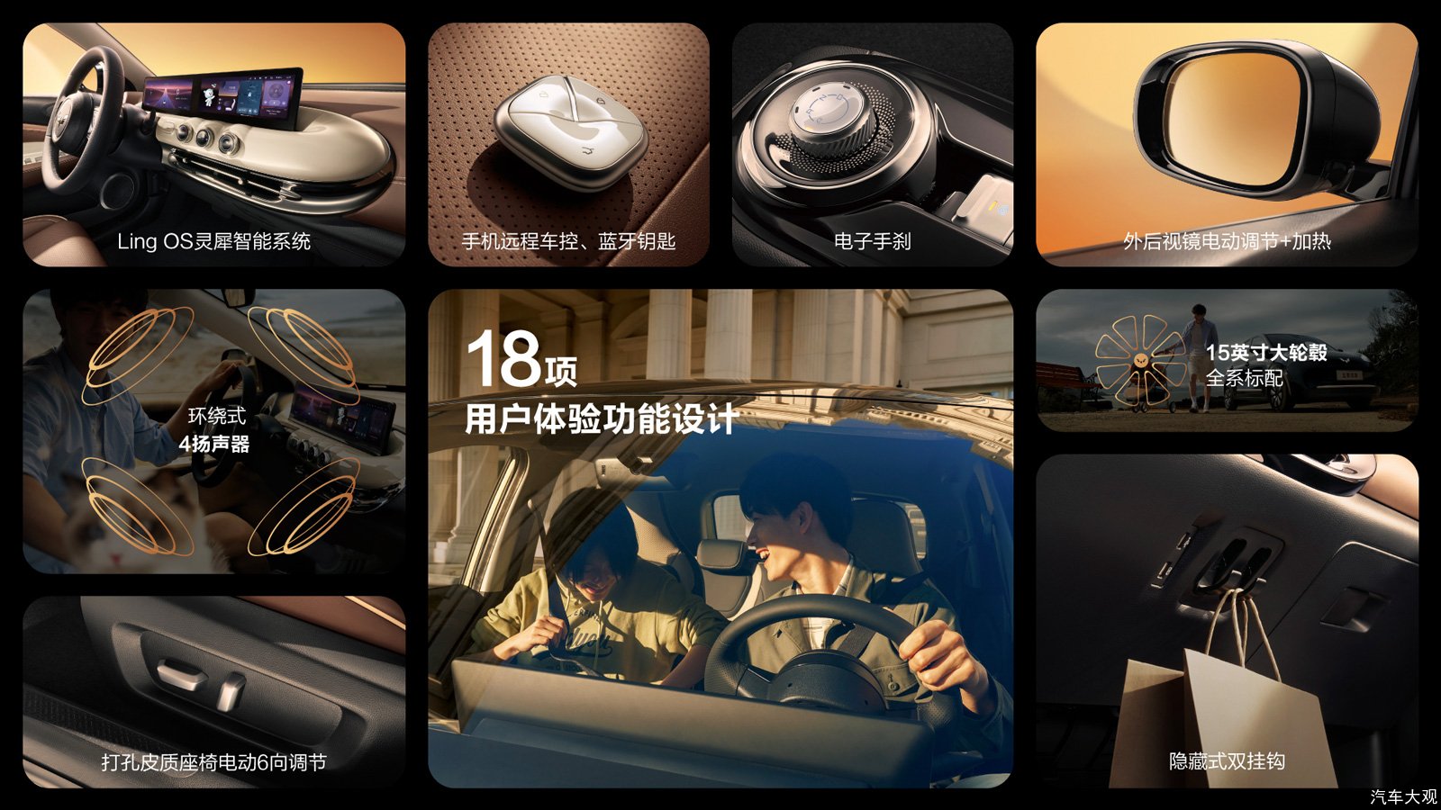 在安全方面,新车配备主副驾安全气囊,全车25处关键防护部位使用了超1500MPa的超高强钢,有效保障用户生命安全;电池包历经多维度严苛的高安全测试,达到电动汽车零部件最高防尘防水等级IP68级。
