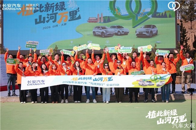 3月20日,2026年长安汽车“与光同行”公益行动首站——“植此新绿·山河万里”活动在山西省太原市正式拉开帷幕。15位来自全国各地的长安车主作为首批“追光者”代表,齐聚黄河“几字弯”东部主战场,以植树护绿的实际行动,践行国家“三北”工程生态战略。长安汽车客户管理部(服务运营中心)副总经理马建永、华北战区总监魏尚龙出席活动。