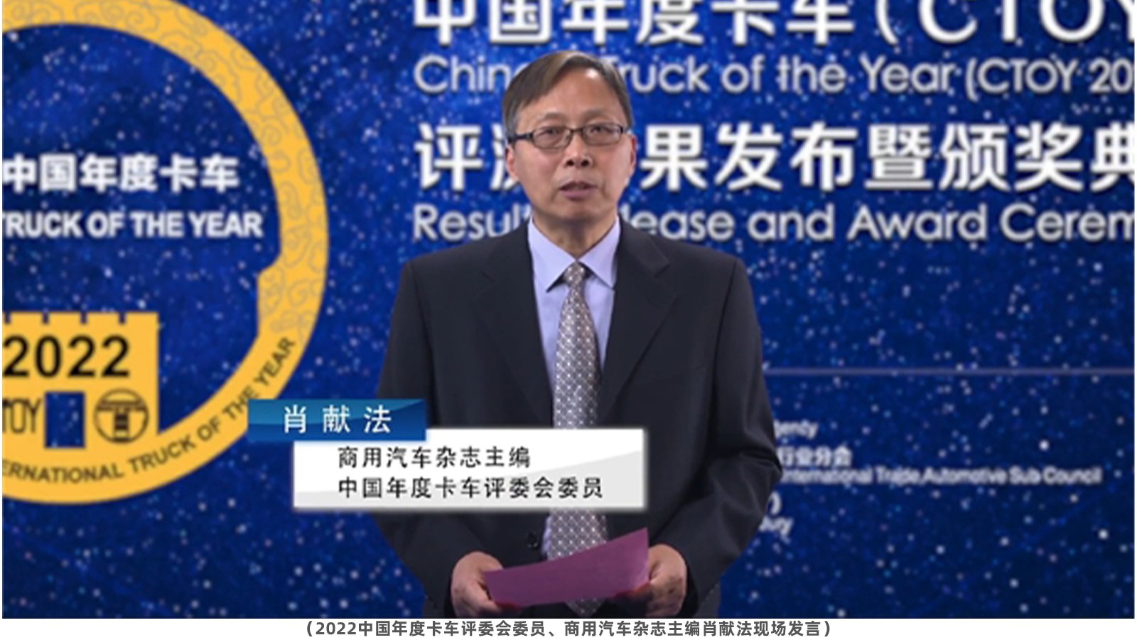 作为国际权威奖项的颁发,国际年度卡车评委会主席Gianenrico Griffini先生以视频形式对欧曼银河送上祝贺:“中国年度卡车来源于国际年度卡车奖项,并与国际卡车评价标准一致,通过创新性、舒适性、安全性、操控性以及全生命周期使用成本(TCO)等因素,评选出对公路运输效率做出显著贡献的产品。欧曼银河凭其动力链性能、时尚的设计、驾驶舒适性以及道路安全性在重型卡车领域树立了新的标杆,祝贺欧曼银河摘得‘2022中国年度卡车’大奖”。