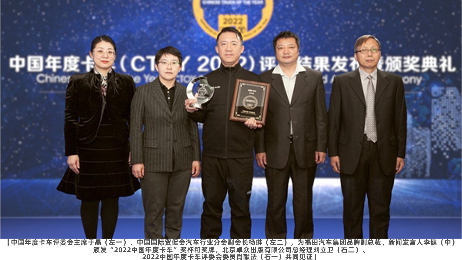 2021年12月28日,卡车行业“奥斯卡”——中国年度卡车(CTOY 2022)颁奖典礼在北京以线上直播的形式顺利举行。经过行业专家以及中国年度卡车评委会的严谨评测,欧曼银河最终以在节油、舒适以及智能化等方面的卓越表现摘得“2022中国年度卡车(CTOY 2022)”奖项,受到国内外专家的高度认可。