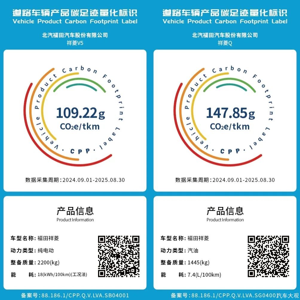 近日,福田汽车再传捷报,中国汽车产业链碳公示平台(CPP平台)正式公示最新一批碳足迹量化标识名单,福田汽车旗下祥菱V5纯电动微卡与祥菱Q汽油微卡双上榜。这一成果不仅是福田汽车在微卡细分领域低碳技术的重要验证,更标志着其已全面实现重卡、轻卡、微卡全品类商用车碳足迹量化标识的全覆盖,为行业绿色发展注入强劲信心。