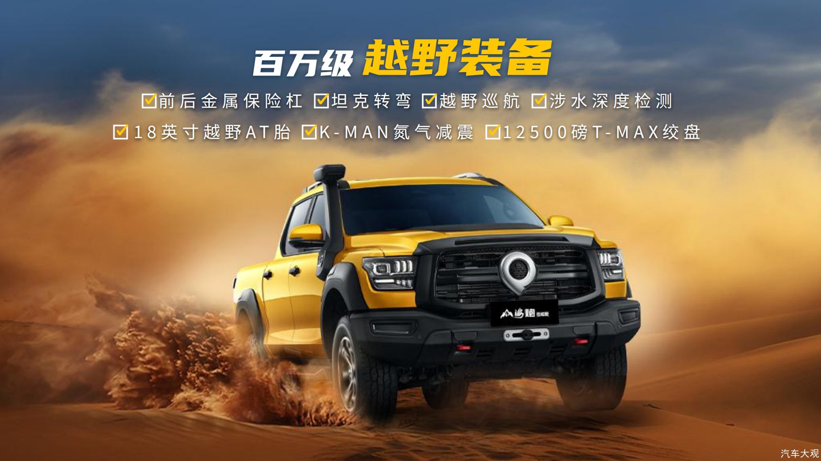 从阿拉善到金海湖,山海炮性能版穿山越海,把硬派越野与智能豪华完美融合,引领中国皮卡迈进全球高端皮卡行列,奏响中国皮卡的最强音。