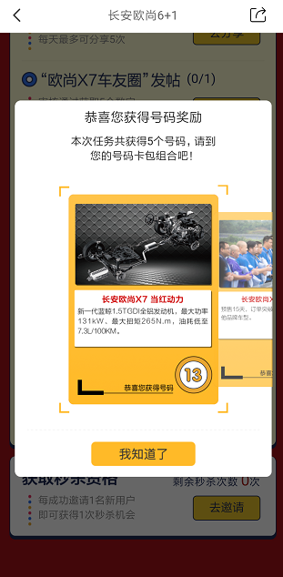 即日起至11月25日凡所有爱车,爱福利的人都可以登录欧尚Style APP参加“长安欧尚6+1,当红X7幸运提”活动,不花一分钱100%得现金红包,还有比双十一还划算的电脑、蓝牙耳机等百万商品1折秒杀专场!放心,这只是开胃小菜,重头戏还在后面呢!长安欧尚6+1活动结合双色球玩法,按照完成设定任务收集数字进行组合,通过组合数字就有机会把集强劲动力、仿生自然大美外观、新奢主义美学内饰、5G智慧系统、360°安全防护为一身的当红SUV——长安欧尚X7开回家。收集的数字越多,中奖几率就越大哟!