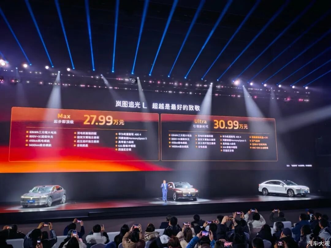 12月10日,岚图汽车旗下旗舰轿车追光L,以“破晓”为主题正式上市,新车推出Max和Ultra两个版本,售价分别为27.99万元和30.99万元。岚图追光L,似乎正是为此而来。