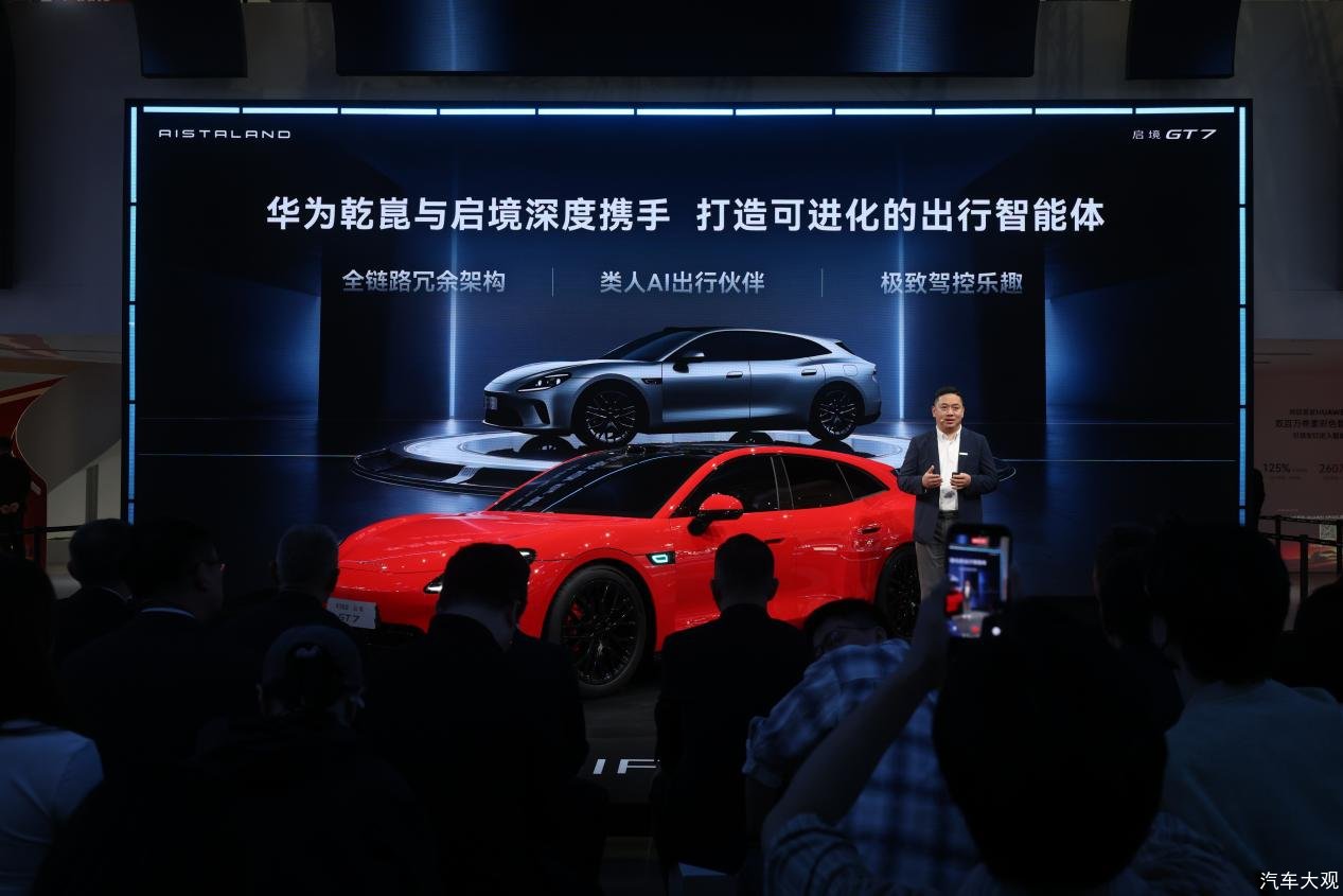 4月24日,第十九届北京国际汽车展览会正式启幕。作为华为乾崑与广汽联合打造的高端智能新能源品牌,启境汽车以“AI启新境,自在有乾崑”为主题登场,首款车型“新一代智能猎装”启境GT7震撼亮相,尽显锋芒。当日,启境GT7技术发布会正式举办,宣布启境GT7将首批满配搭载华为乾崑新一代智能技术,定义含华量新高度。以全维安全为基石、以“可进化能力”为尖点,启境GT7搭载华为乾崑智驾ADS 5、鸿蒙座舱小艺智能体、华为乾崑赤兔平台等全新一代智能技术,演绎“一车即乾崑”的技术实力。