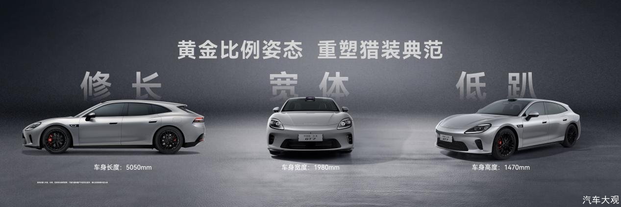 启境GT7对标百万级豪华跑车经典美学比例,历经极致打磨,实现——车长5050mm、车宽1980mm、车高1470mm,轮高比51.2%,修长、宽体、低趴的黄金比例姿态。为了让宽体效果更极致,后轮配275mm宽胎,肌肉感拉满。21.5度启境猎装角,最大化保证车尾空间,轴距达3000mm,轴长比59.4%,兼顾美感、实用与舒适。