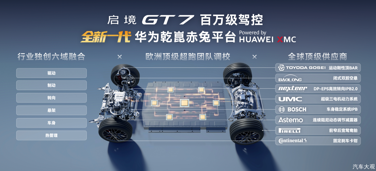 启境GT7将新一代华为乾崑赤兔平台、顶级硬件及国际大师调校三大优势进行原生融合,将智能科技注入驾控灵魂,成就启境GT7的百万级驾控体验。